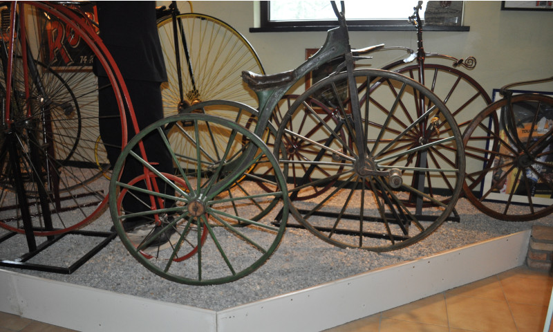 La porte du Musée franchie, vous pénétrez dans une collection de plus de 200 pièces qui retrace la fabuleuse histoire du vélo. Pour commencer, un film de 30 minutes vous montre les étapes de l’évolution de la machine à courir jusqu’à nos jours. Ensuite vous parcourez les pièces d’exposition, regroupées par thèmes historiques du vélo, évolution de la bicyclette de 1819 à nos jours, évolution du vélo de course, les différents types de vélos utilitaires, les vélos à systèmes particuliers (cardans, dérailleurs spéciaux), les vélos pour enfants.